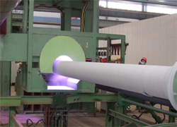 ●工藝簡(jiǎn)要:攪拌系統(tǒng)將一定比例的水泥、沙子和水進(jìn)行充分均勻的混合,再采用離心噴涂工藝將混合后的水泥涂覆到管道內(nèi)表面,可以得到壓實(shí)致密的、表面平整的水泥內(nèi)襯。水泥內(nèi)襯是球墨鑄鐵管常規(guī)的、典型的內(nèi)防腐形式。